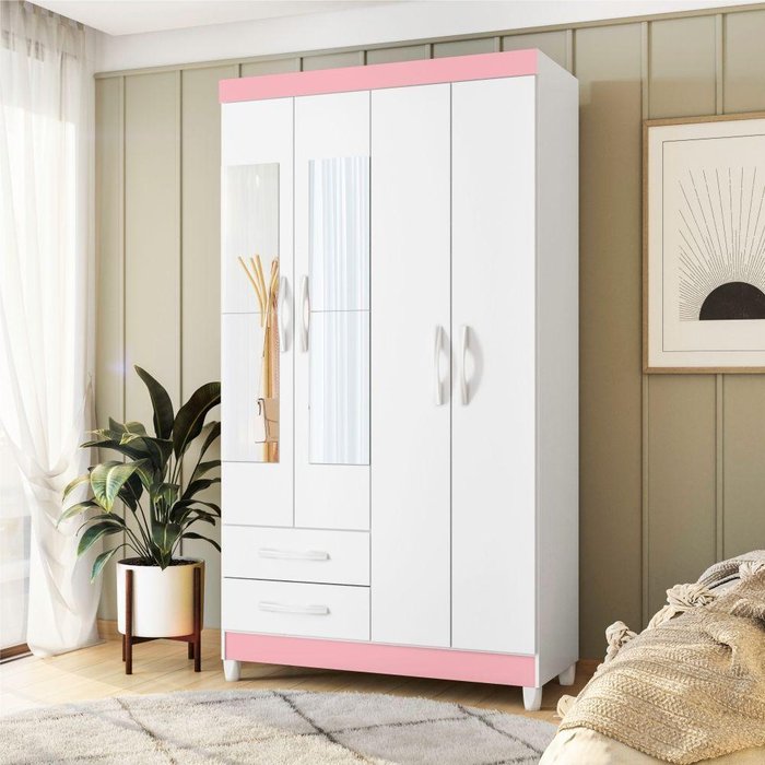 Guarda Roupa com Espelho Valentina Branco/titanium/azul Mate/rosa Mate Branco