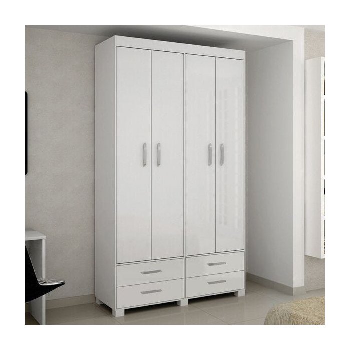 Guarda-Roupa com Pés 4 Portas 4 Gavetas Jeribá 3443 - Branco Textura