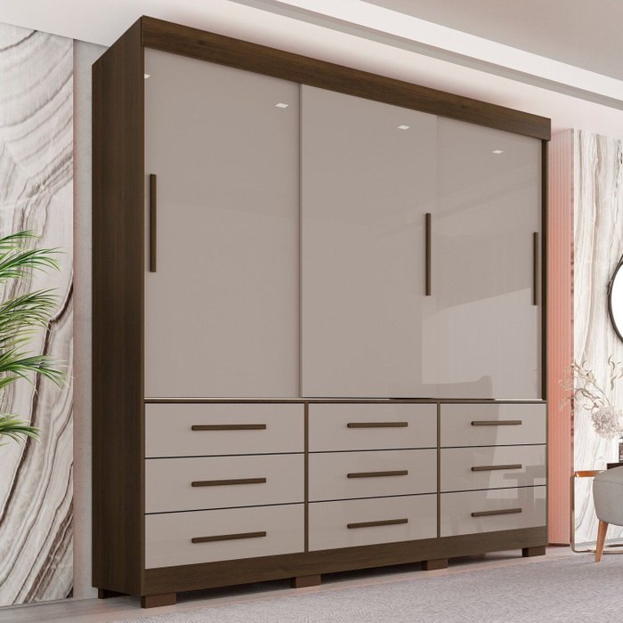Guarda Roupa com Pés Casal 3 Portas 9 Gavetas Luana Savana/Off White