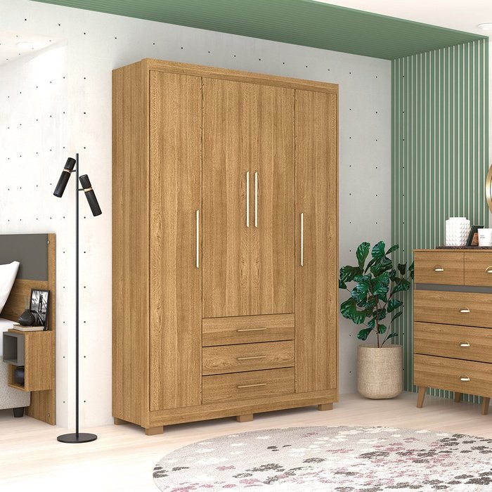Dispõe três gavetas com profundidade excelente para acomodar todas as suas roupas, contando com quatro prateleiras perfeitas para guardar sapatos, cobertores…