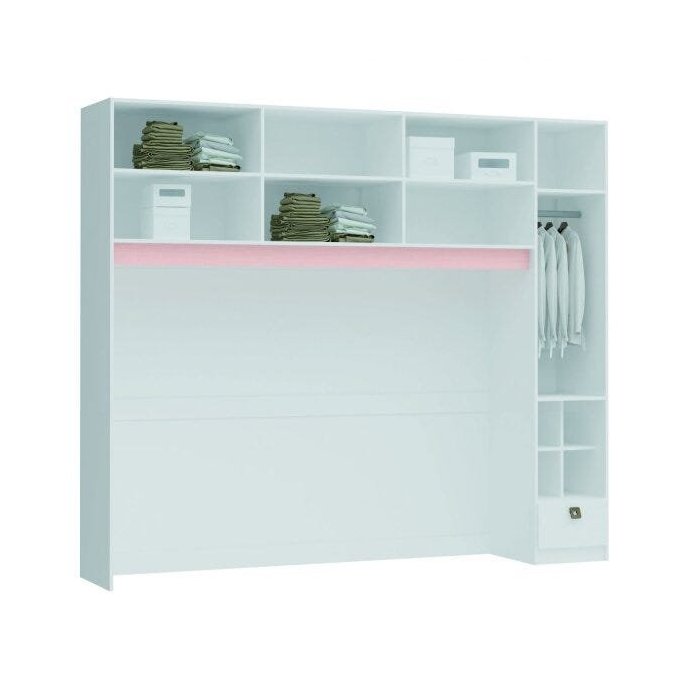 Guarda-Roupa Conjugado Cabeceira Casal 5 Portas 1 Cabideiro 1 Gaveta Smart Pop Móveis Castro Branco/Rosa Blush