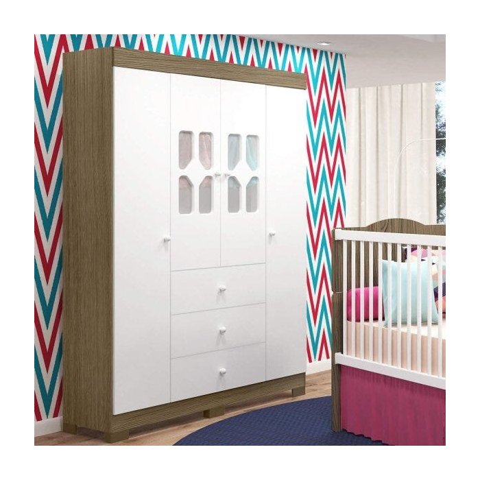 Guarda-Roupa de Bebê 4 Portas 3 Gavetas New Cristal Móveis Canaã