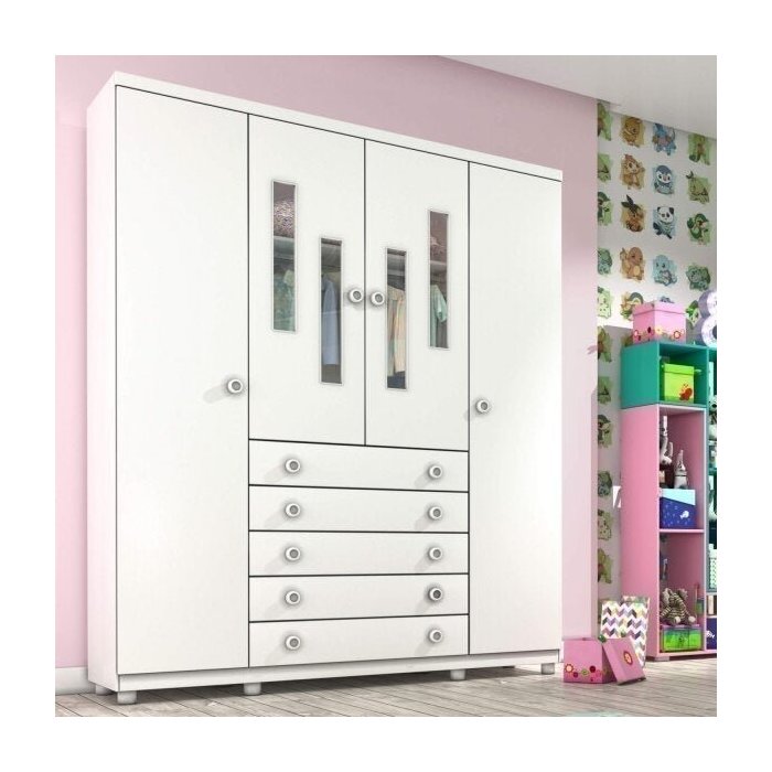 Guarda-Roupa de Bebê 4 Portas 5 Gavetas Evolution Tcil Móveis Branco