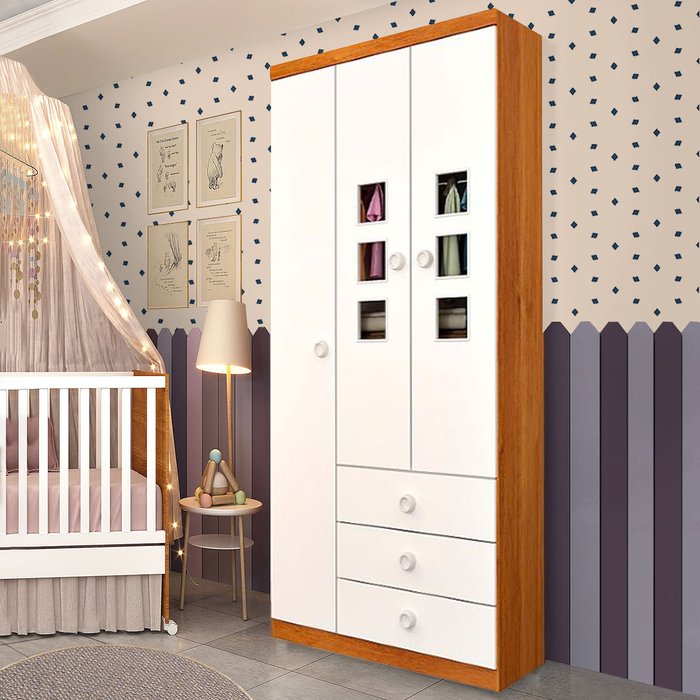 Guarda-Roupa de Bebê Sonic 3 Portas 3 Gavetas Cinamomo/Neve - Tcil Móveis