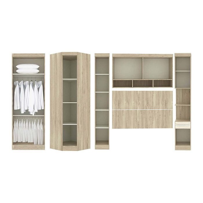 Guarda Roupa de Canto Casal 8 Portas Cabideiro Calceiro com Cabeceira Queen Master Luciane Móveis Avelã Rústico/Ártico Rústico