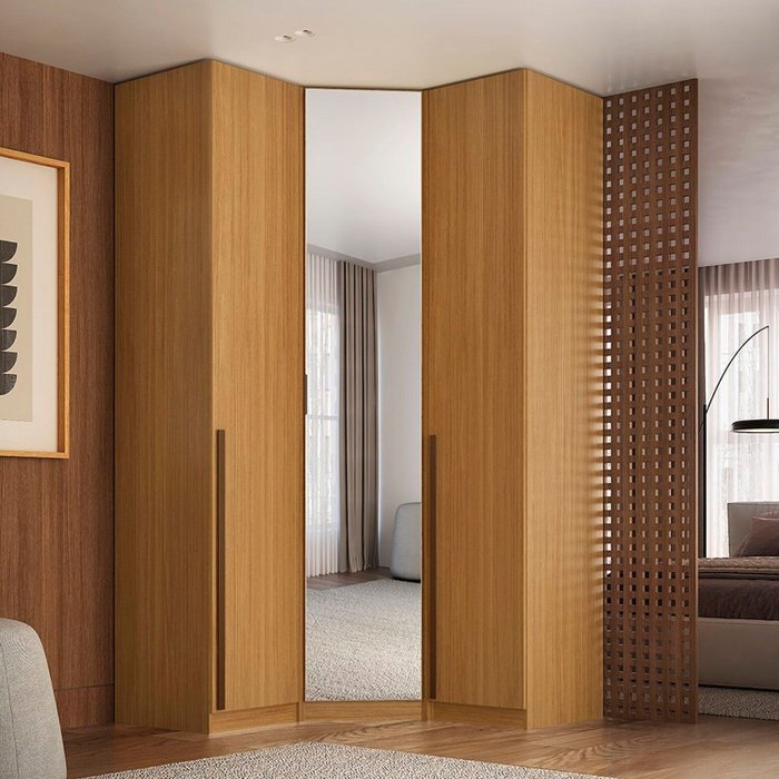 Guarda-roupa de Canto com Espelho 3 Portas Altezza Freijó