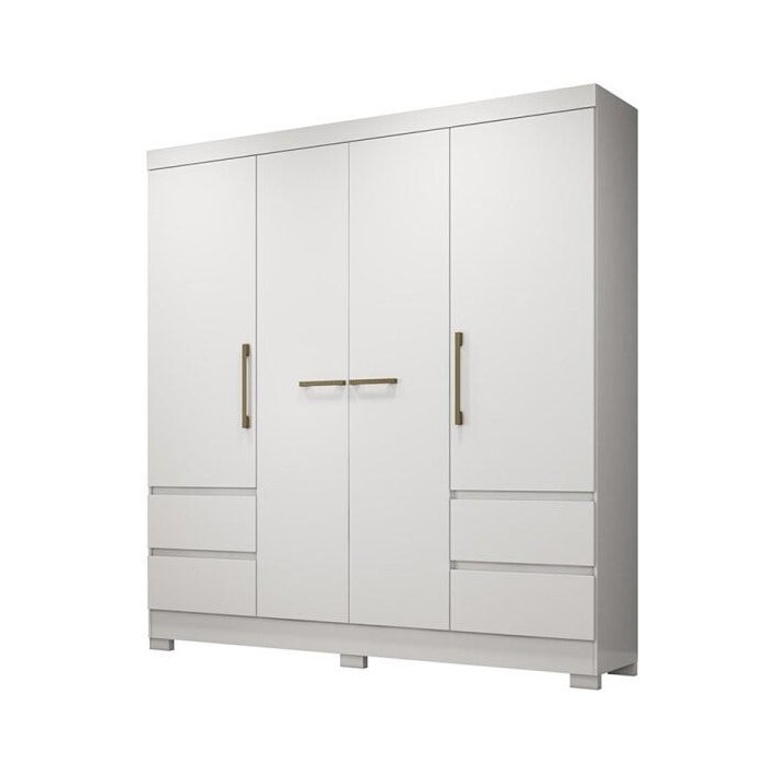 Com design elegante e amplo espaço de armazenamento, o Guarda-Roupa Roma é uma ótima opção para quem deseja manter o quarto organizado e bem decorado. Fabricado com MDP e revestido com Pintura UV, esse roupeiro possui uma estrutura super-resistente com 4 Porta e 4 gavetas.