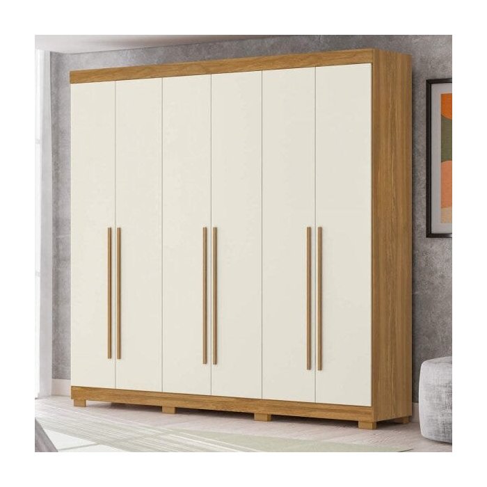 Guarda-Roupa de Casal 6 Portas 4 Gavetas Belém Carvalho Grife/Off White