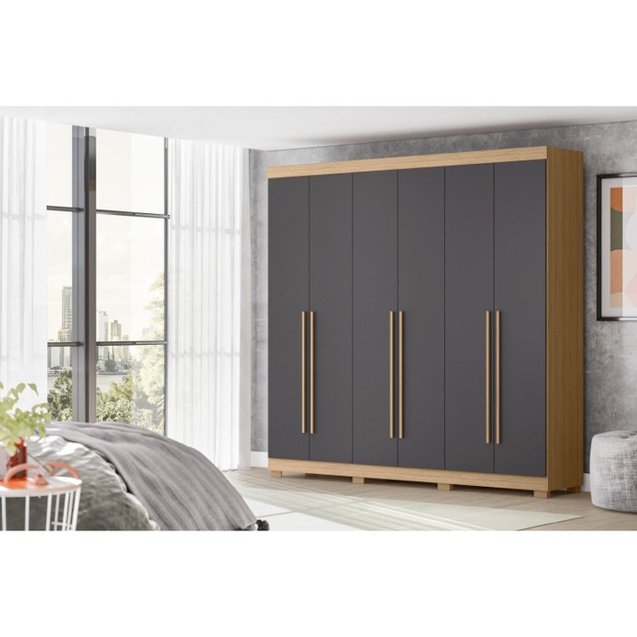 Guarda Roupa de Casal 6 Portas 4 Gavetas Belém Albatroz Móveis Nature/Titanium