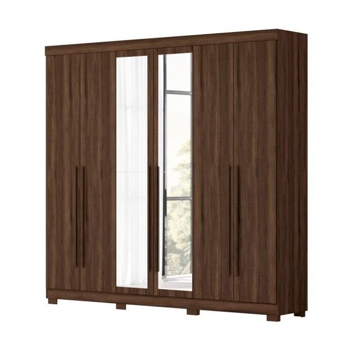 Guarda-Roupa de Casal 6 Portas 4 Gavetas com Espelho Belém Albatroz Móveis - Cedro