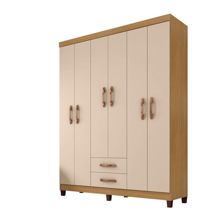 Guarda Roupa de Casal 6 Portas e 2 Gavetas sem Espelho Manchester Cor 390 - Carvalho - Off White