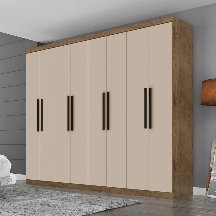 Um quarto moderno e aconchegante precisará de um móvel diferenciado como este Guarda Roupa Mayara da Araplac, desenvolvido para oferecer total conforto e comodidade para você e sua família. Ele é composto por 8 portas de bater, puxadores de PVC em preto, 4 gavetas internas, corrediças e bastões metálicos. Seu material é ecologicamente correto que confere boa resistência e durabilidade ao móvel. Surpreenda-se com design, inovação, beleza e durabilidade!