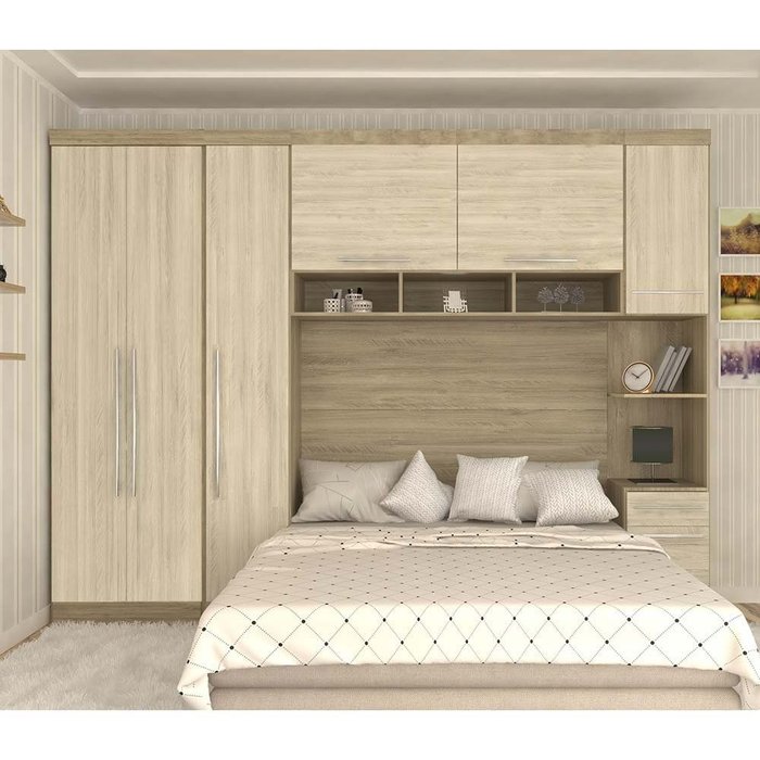 O Dormitório Modulado Master é ideal para ampliar e aproveitar o máximo de espaço possível, facilitando a organização de seu cotidiano.O Dormitório Master conta com um guarda roupas espaçoso, prático e de alta qualidade.Produto 100% em MDP de 15mm, que garante maior resistência e durabilidade de seu móvel. Sendo mais leve e mais resistente que o MDF.Devido a sua estrutura reforçada em MDP as prateleiras são muito mais fortes e suportam mais peso, sem a preocupação do material ceder e ficar torto.Sua Belíssima cor, combinando a estrutura em Avelã Rústico e portas em Ártico Rústico, transforma seu quarto em um ambiente moderno e agradável.As gavetas contam com corrediças telescópicas de 3 estágios, garantindo abertura total, sem risco de descarrilamento.O Dormitório Master conta com puxadores em PS cromado, prático, bonito e durável.(Imagem meramente ilustrativa; Itens de decoração não estão inclusos)(SeuMóvel.com não faz serviço de montagem, mas você recebe o manual de montagem dentro da embalagem.)DimensõesAltura: 230 cmLargura: 286,5 cmProfundidade: Roupeiro (Guarda Roupa) 46,5 cm; Criado-Alto e Aéreos 41,5 cmItens Inclusos:- 2 Painéis de 146 cm x 45 cm na cor Avelã Rústico- 1 Guarda Roupas de 3 portas - 1 Criado Alto, unilateral- 1 Maleiro Aéreo de 147 cm para cama de casal comum 1,38 m- Manual de montagem individual