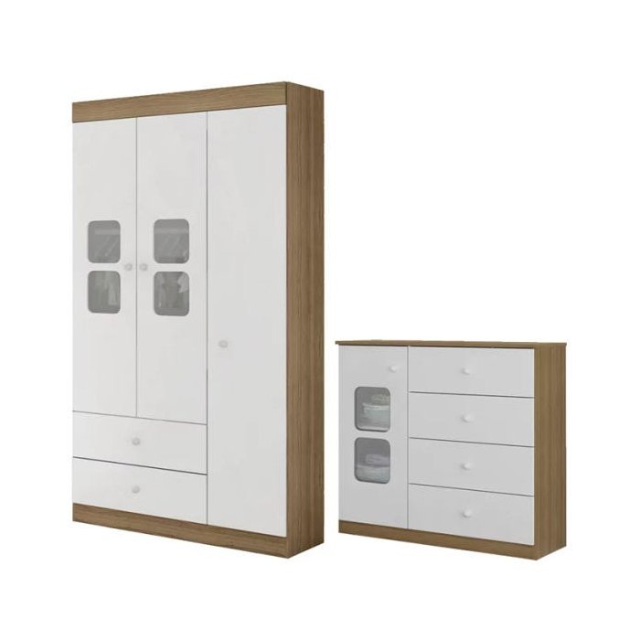 Guarda-roupa e Cômoda Infantil Xodo Branco Almendra Móveis Estrela