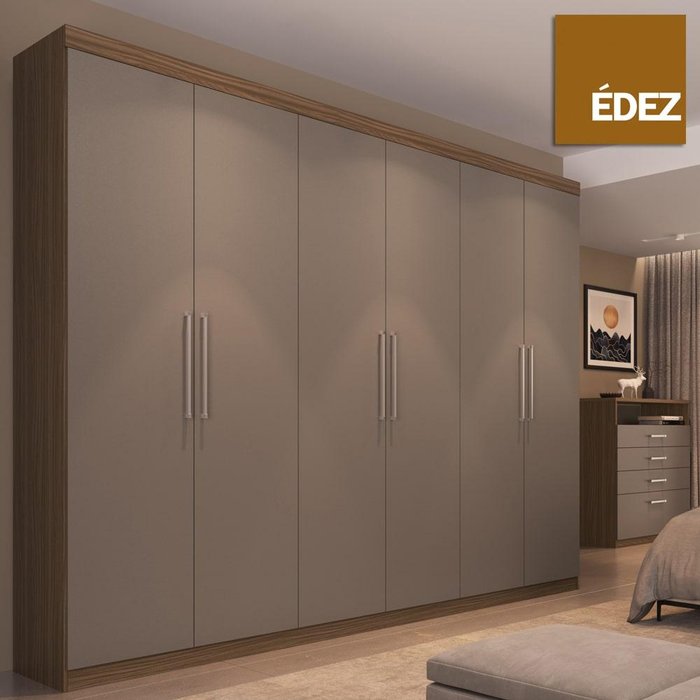Guarda-Roupa Édez Casal Montreal, 6 Portas 2,68 m, Fendi e Nogueira