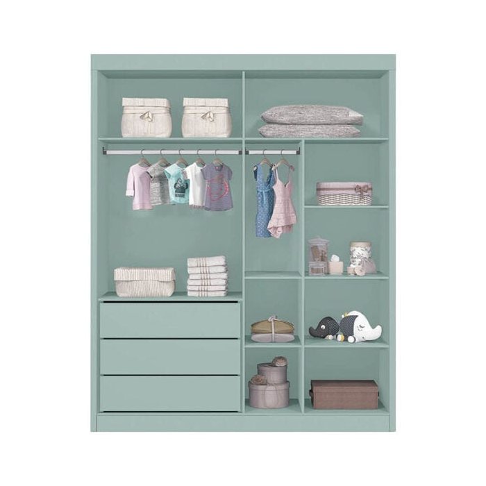 Guarda-Roupa Encanto 168cm com 4 Portas e 3 Gavetas 100% MDF Menta Acetinado OOL