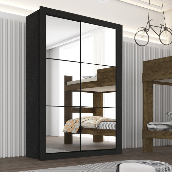 Guarda Roupa Espelhado 2 Portas 2 Gavetas Costa Rica Sallêto Móveis Preto