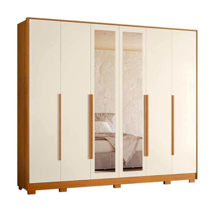 Guarda Roupa Fascínio com Espelho 6 Portas Cinamomo/off White - Abz