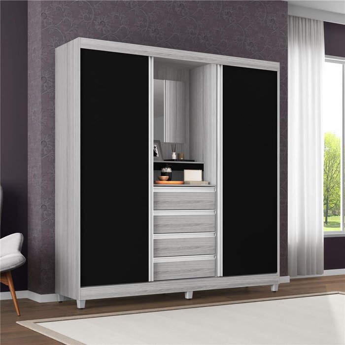 Guarda Roupa Fortaleza II com 2 Portas de Correr e 4 Gavetas Bartira Cinza com Preto