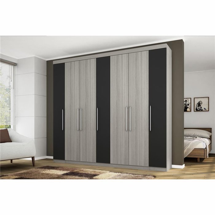 Guarda Roupa Havana II com 7 Portas e 4 Gavetas Bartira Cinza com Preto