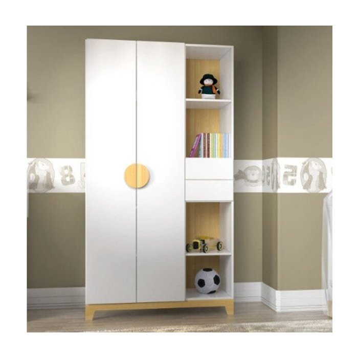 Guarda-Roupa Infantil 2 Portas 2 Gavetas Drope Espresso Móveis Branco/Pinus