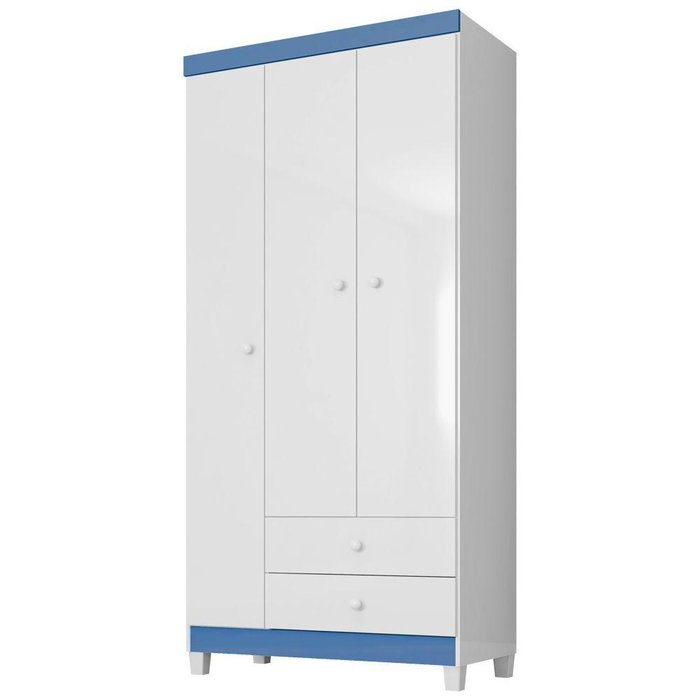 Guarda Roupa Infantil 3 Portas 2 Gavetas Branco Azul
