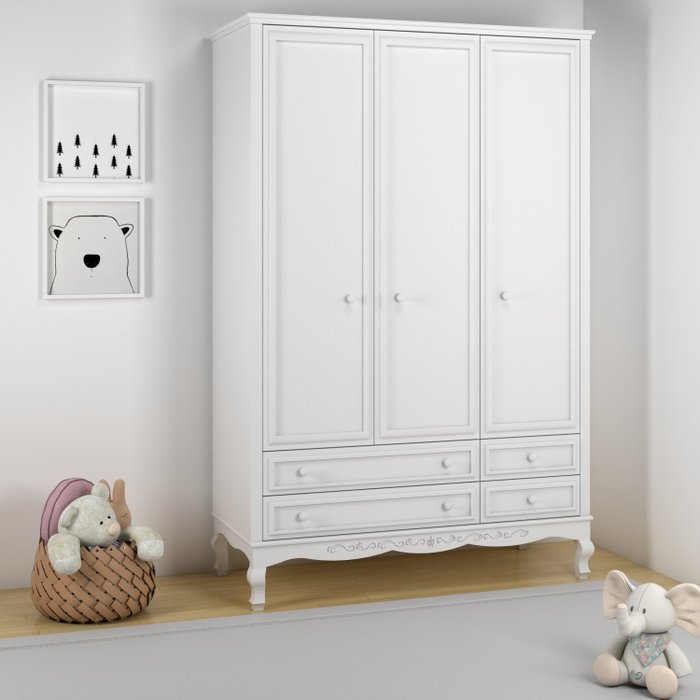 Guarda Roupa Infantil 3 Portas 4 Gavetas Versailles Branco