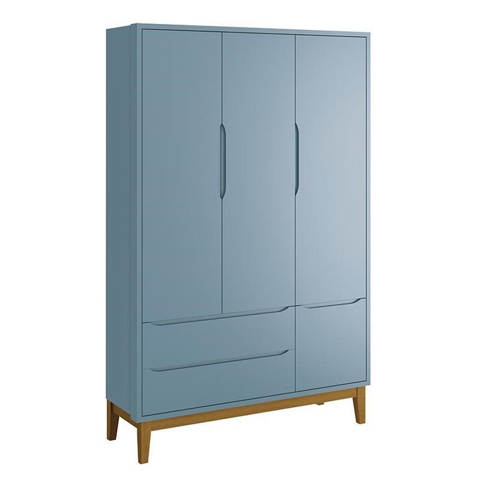 Guarda Roupa Infantil 3 Portas Classic Azul Fosco com Pés Amadeirado - Reller Móveis