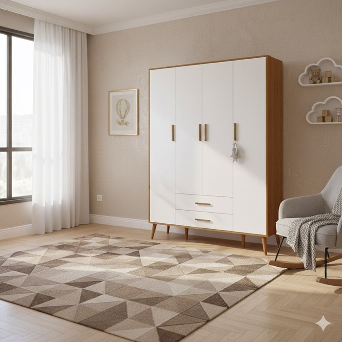 Procurando as principais tendências com o melhor preço? Apresentamos para você o Guarda Roupa Infantil 4 Portas Isis desenvolvido pela Reller com estrutura em MDF, design sofisticado, e amplo espaço interno com prateleiras, gavetas e cabideiro, perfeito para deixar as roupinhas, sapatinhos e acessórios do bebê organizados, aproveite!