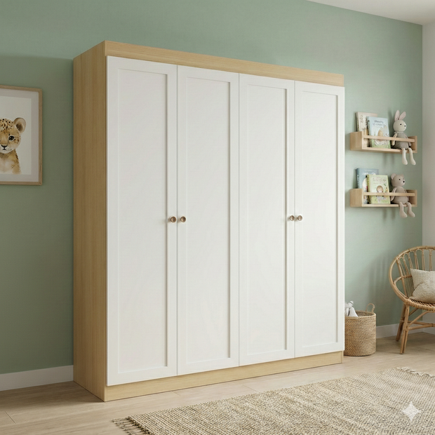 Guarda-Roupa Infantil Americano 4 Portas 2 Gavetas Alecrim Yescasa Savana/Branco