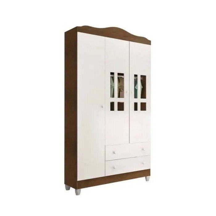 Guarda-Roupa Infantil Ariel 3 Portas 2 Gavetas Branco Fosco/Amadeirado