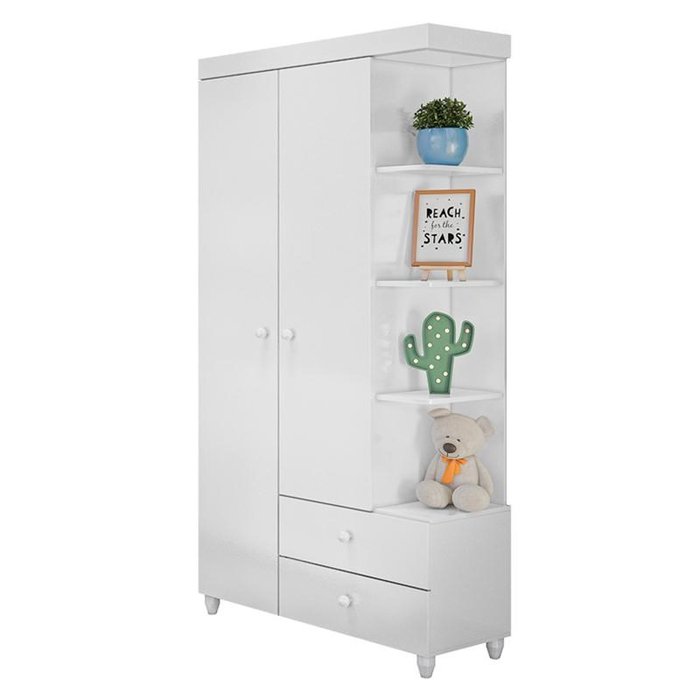 Guarda Roupa Infantil Carinhoso 2 Portas e 2 Gavetas Branco - PR Baby Branco