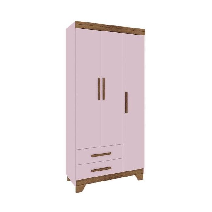 Guarda-Roupa Infantil com 3 Portas e 2 Gavetas Acetinado Adoleta-Rodial - Rosa / Cacau