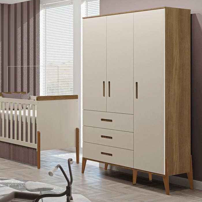 Guarda Roupa Infantil Emilly 3 Portas Off White Carvalho – Canaã