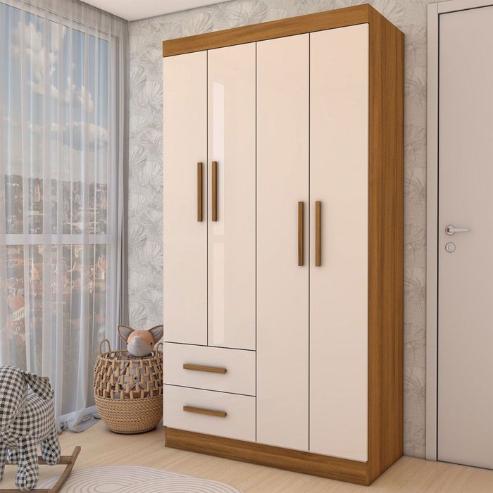 Guarda-roupa Infantil Linho 4 Portas 2 Gavetas Freijó Trend/off White Tx - Panorama Móveis
