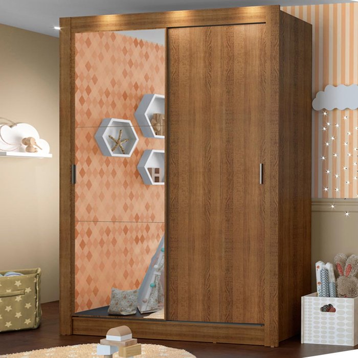 Guarda-Roupa Infantil Madesa Enzo 2 Portas de Correr com Espelho Rustic Cor:Rustic