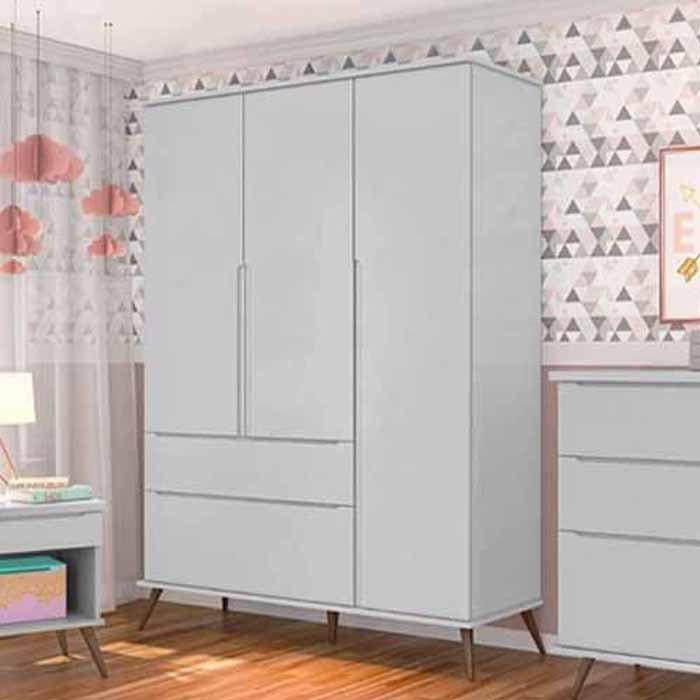Guarda-Roupa Infantil Melinda Cinza 100% MDF 3 Portas e 2 Gavetas - Phoenix Baby