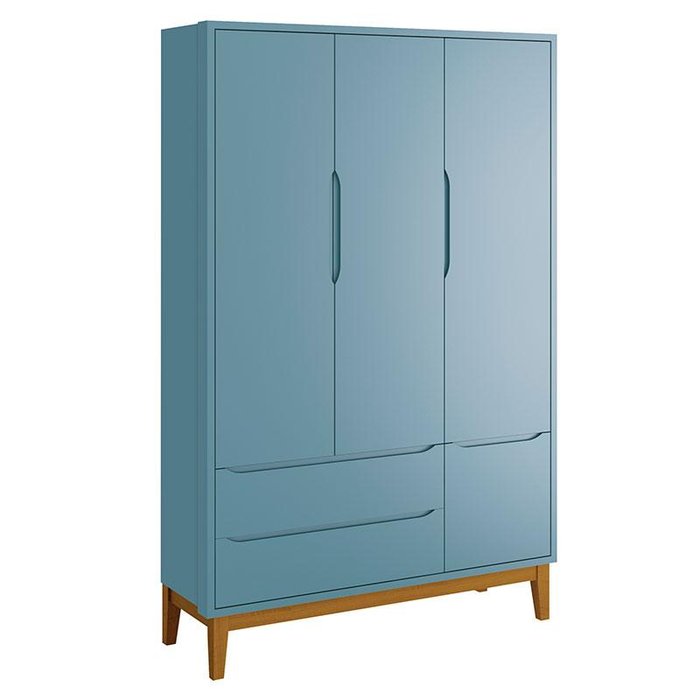 Guarda Roupa Infantil New Classic 3 Portas Azul com Pés Madeira – Reller