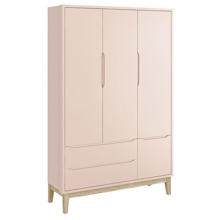 Guarda Roupa Infantil New Classic 3 Portas Rosa com Pés Madeira Natural – Reller