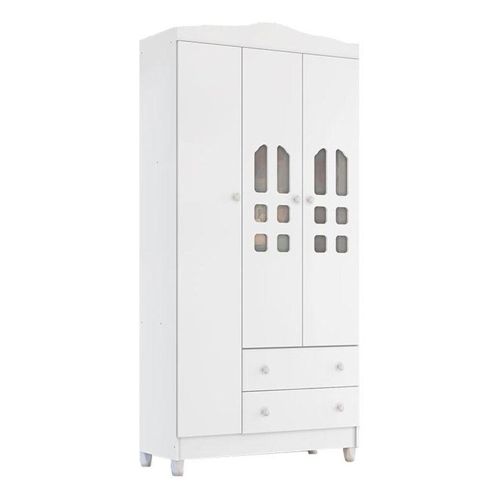 Guarda Roupa Infantil New Selena 3 Portas Branco Brilho - Carolina Móveis