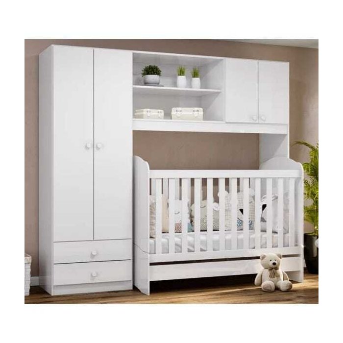 Guarda-Roupa Infantil Passarela com Berço Bala de Menta Branco Henn