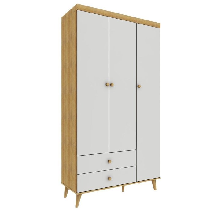 Guarda Roupa Infantil Retrô 3 Portas com Gavetas Lígia Off White com Bétula Carolina Baby