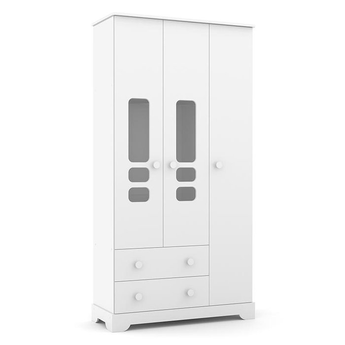 Guarda Roupa Infantil Smart 3 Portas e 2 Gavetas Branco Brilho - Matic Móveis
