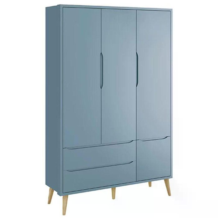 Guarda Roupa Infantil Theo 3 Portas Azul Fosco Com Pés Madeira Natural - Reller Móveis Azul Fosco