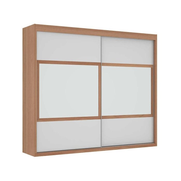 Guarda-roupa Joinville com Espelho Castanho com Off-white - Mirarack