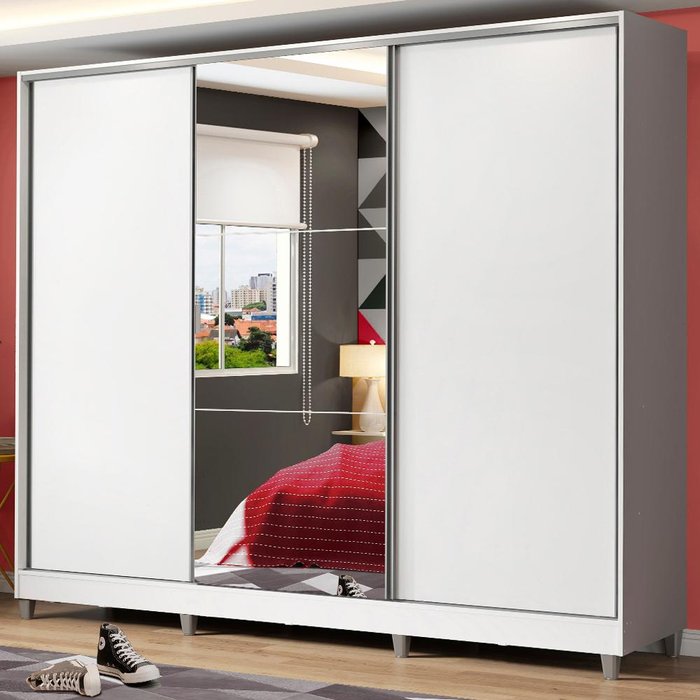Guarda Roupa Juvenil 100% Mdf Madesa Kevin 3 Portas de Correr com Espelho com Pés - Branco
