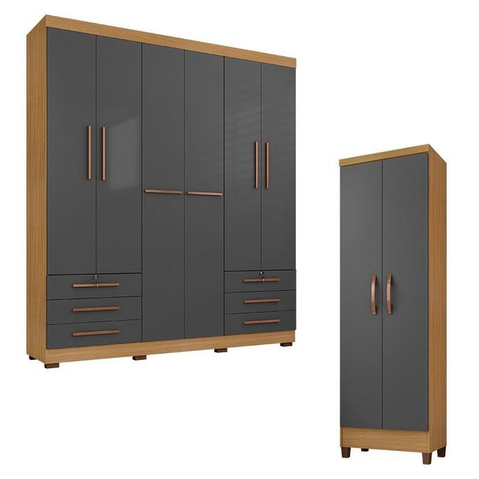 Guarda Roupa Londres com Multiuso Egito Carvalho Americano Grafite - Incorplac