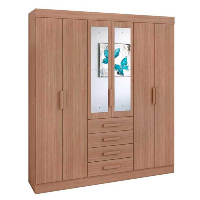 Guarda-Roupa Lopas Celebrare com 6 Portas e 4 Gavetas com Espelho Dimensões(Cm): Comprimento(Profundidade): 46,80 x Largura: 163,20 x Altura: 205,00 CARACTERÍSTICAS de MÓVEIS Tipo de Estrutura do Móvel: 100% MDP Tipo de Pintura: UV (Ultravioleta) Tipo de puxador: Puxador em MDF Quantidade de Prateleiras: 4 Prateleiras Quantidade de Gavetas: 4 Gavetas Diferenciais da Gaveta: Corrediças Telescópicas Quantidade de Portas: 6 Portas de Abrir Garantia: 3 Meses