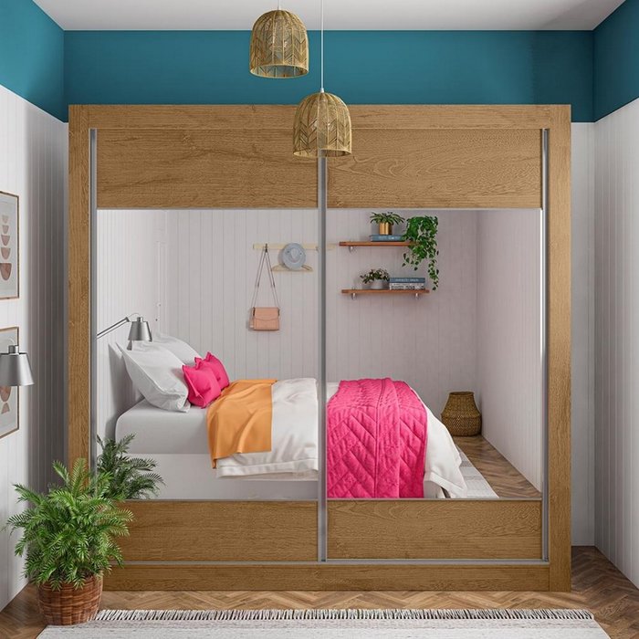 Produzida em MDP, ele conta acabamento em pintura UV, diversas repartições internas para alocar os seus pertences, porta de correr com espelho, maleiro e gavetas amplas.