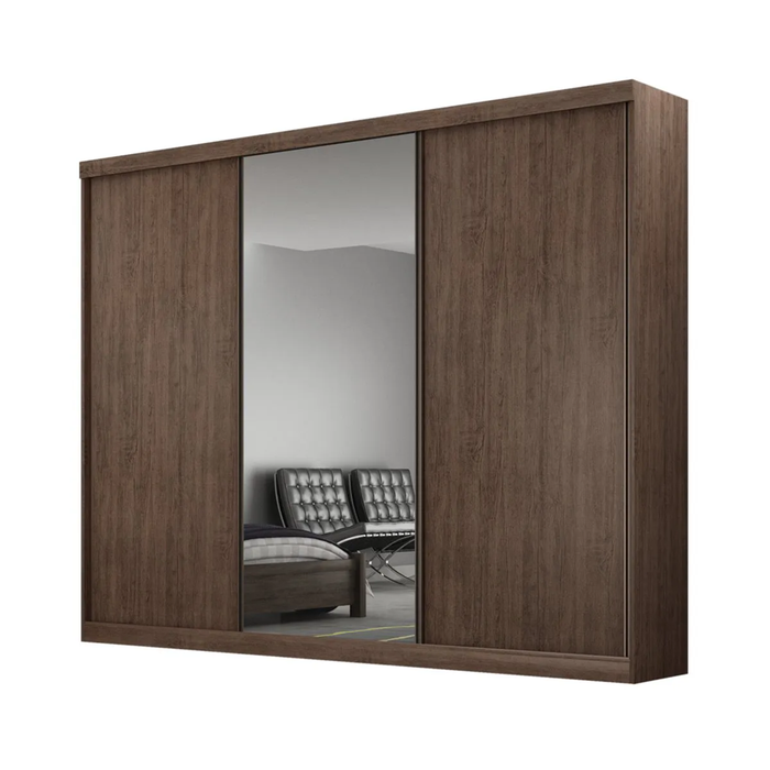 Guarda Roupa Manaus 3 Portas de Correr e 4 Gavetas com Espelho Valverde Canion